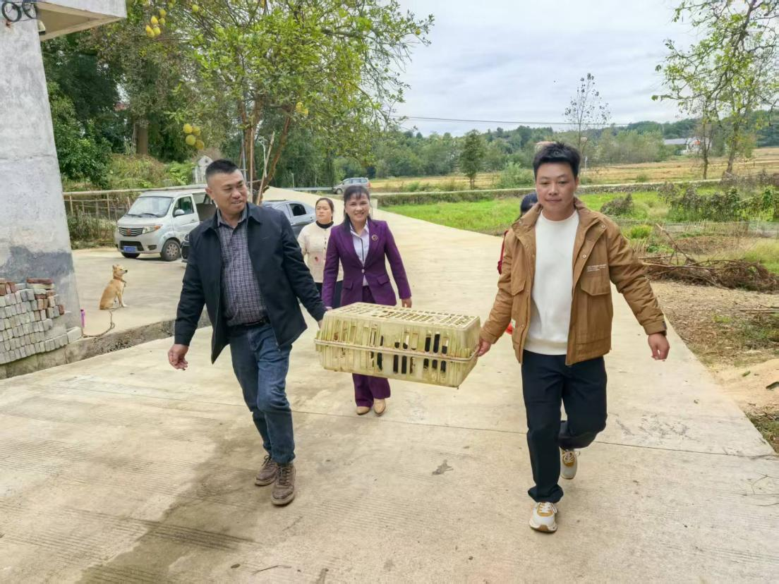 工作队通过全覆盖走访,摸清12户监测户、182户脱贫户的发展诉求,针对11户监测户的庭院养殖意愿,迅速采购发放优质鸡苗110只、配套饲料100余斤。为破解农户“不会养、怕滞销”的难题,工作队邀请士山农业技术负责人入户指导饲养技术和疫病防治,同时协调企业签订保底回收协议,形成“发放-指导-回收”全链条服务。截至目前,已通过订单采购方式向8户脱贫(监测)户采购农产品7283元,让农户足不出村实现稳收增收。此外,针对群众反映强烈的灌溉难题,工作队积极争取后盾单位支持,推进两座年久失修水坝的修复工作,为产业发展提供水利保障。