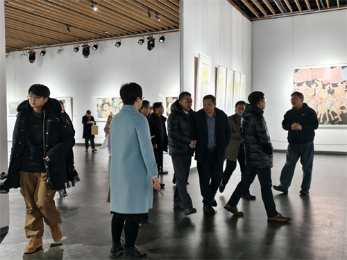 山东工艺美术学院院长董占军、青岛市文联党组书记徐树成、山东省美协驻会副主席李岩,青岛市文联副主席、青岛市美术家协会主席张凤塘,胶州市委常委、宣传部部长孙静,胶州市人大常委会副主任于福文、胶州市政协副主席贾全国、胶州市政协原副主席王天鸿,青岛大沽河省级生态旅游度假区党工委副书记、副主任李洋静,胶州市文联党组书记、主席宋祥文等领导,中国艺术研究院国画院副院长苏睿、中国国家画院研究员任军伟、山东工艺美术学院造型艺术学院院长刘宁,山东工艺美术学院办公室副主任刘振良,青岛农业大学艺术学院院长李慧斌、浙江财经大学艺术学院美术学系主任叶盛、山东工艺美术学院造型艺术学院国画教研室主任丁雷、山东工艺美术学院造型艺术学院壁画教研室主任齐敬峰、山东工艺美术学院油画教研室主任刘劲蓬、山东工艺美术学院教授史广信、山东师范大学美术学院中国画系主任孟祥军、山东大学当代水墨研究中心主任任贤义、山东师范大学研究中心副主任曹新刚、山东工艺美术学院副教授陈一云、山东工艺美术学院工业设计学院副教授刘志刚、山东工艺美术学院马克思主义学院副教授张运春、山东工艺美术学院讲师王少川、著名策展人颉晓刚、青岛博物馆学会会长刘庆等专家学者,青岛丰光精密机械股份有限公司董事长李军、青岛华基智联物流有限公司董事长马云汉 、青岛浩嘉置业有限公司、青岛万豪酒店董事长窦永熙 、玺合禧宴婚庆艺术中心董事长陈金磊、北京瑞艺术总监孙瑞、北京京珩文化投资产业发展集团董事长杨明、山东芸海文化发展有限公司董事长纪伟涛等企业界、艺术机构的嘉宾,以及艺术爱好者、市民朋友200余人参加了开幕式。开幕式由山东工艺美术学院造型艺术学院院长刘宁主持,山东师范大学研究中心副主任曹新刚主持座谈会。