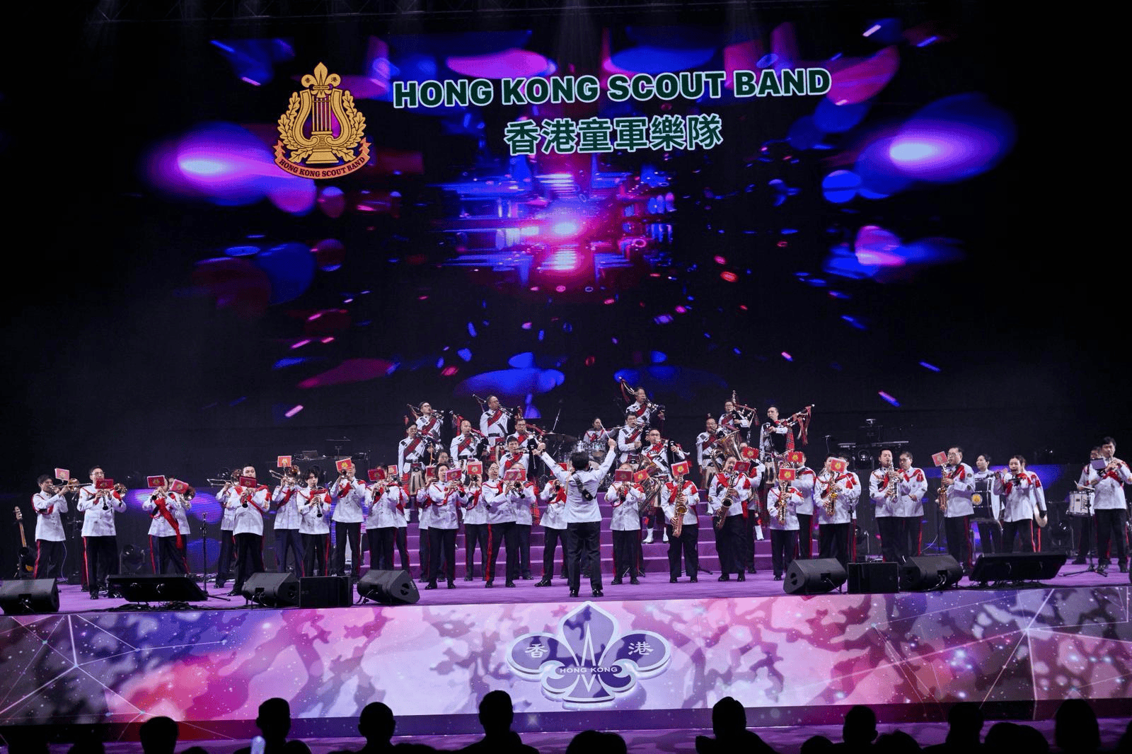 率先登场的香港童军乐队以精湛的军乐演奏揭开音乐盛宴序幕,三首经典名曲以铿锵节奏点燃全场热情。