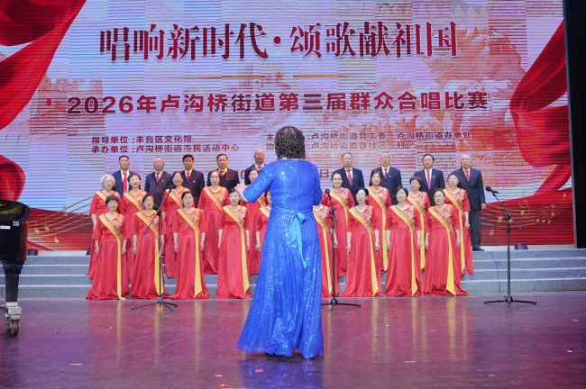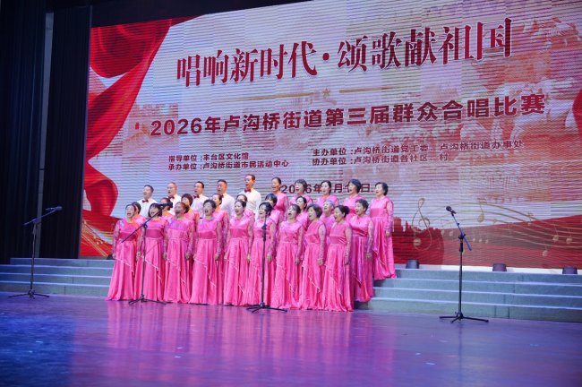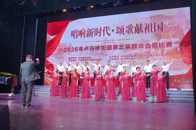 《看山看水看中国》的旋律轻快昂扬,勾勒出祖国山河壮丽画卷,唱出了新时代人民对祖国大好河山的热爱与自豪;《我们的中国梦》旋律深情大气,以悠扬的歌声传递出人民对美好生活的向往与期盼;《当那一天来临》《鸭绿江》《我的祖国》《洪湖水浪打浪》《壮美延安》等红色经典,以铿锵有力的节奏、饱含深情的演唱,回望峥嵘岁月,致敬革命先辈,传递出强烈的家国情怀与奋斗精神;《阿瓦人民唱新歌》《天边的骆驼》《爱永在》《玉盘》《我们是快乐的好朋友》等曲目风格多元,或欢快灵动、或温情治愈,展现了卢沟桥街道群众文化生活的丰富多元与新时代人民的幸福风貌。