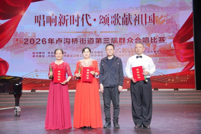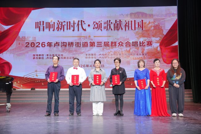 经过专业评委的现场评审与打分,比赛最终评选出市民活动中心红枫秋实合唱团荣获一等奖,假日风景社区秋实之韵男声组合和假日万恒社区志愿军研究分会艺术团荣获二等奖,莲玉嘉园社区军晖雅韵合唱团、假日风景社区邻里如虹合唱团、大井村合唱团荣获三等奖,兆丰园社区兆丰红韵艺术团、张仪村老年合唱团、金通阳光苑金通艺术团合唱队、小屯社区合唱团、小瓦窑西里社区彩虹之韵合唱团、金璟阳光苑社区金璟阳光合唱团荣获优秀奖,并对表现优异的队伍进行了表彰。评委们表示,本次参赛曲目主题鲜明、风格多样,各队伍演唱水平整体较高,充分展现了卢沟桥街道群众的文化素养与精神风貌。